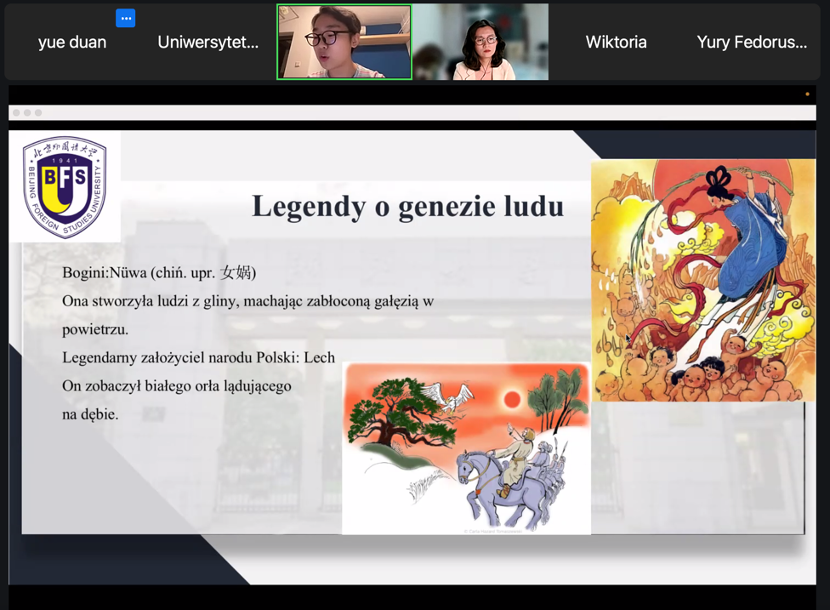邹新宇在“科幻文学”板块以“幻想之界——中波创世神话对比”(Granice fantazji – porównanie polskich i chińskich mitów stworzenia)为题发言,通过对比对两国文学创作和民族性格产生重要影响的创世神话,以“女娲造人”和“莱赫三兄弟”为例分析此类创世神话对构建两国民族的神圣起源和身份认同感的异同,并通过“盘古开天地”和卢布林地区流传的“上帝魔鬼合作创世”来分析中波哲学思想中天人合一与二元性的差异。