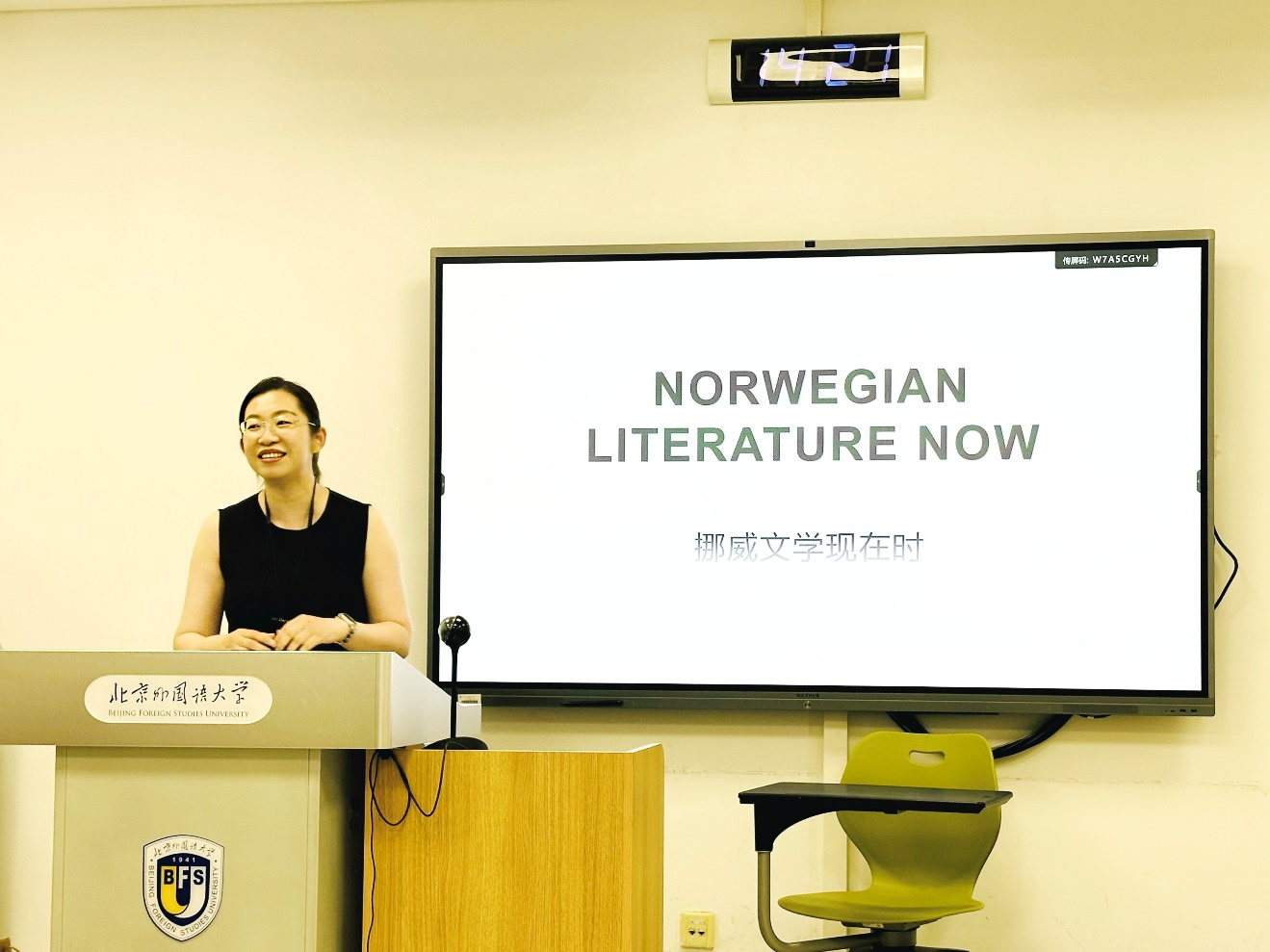 讲座以挪威儿童文学为切入点,重点讨论了挪威独具魅力的儿童文学作品,探讨了挪威儿童文学在挪威文学领域的重要性和影响力,分享了挪威儿童文学的发展与传承。在虚构与非虚构文学方面,邹雯燕女士介绍了挪威文学经典作品和现代创作,探讨了虚构与非虚构文学在传承文化、探索人性等方面的作用。挪威专业师生积极参与互动讨论,课堂气氛活跃。