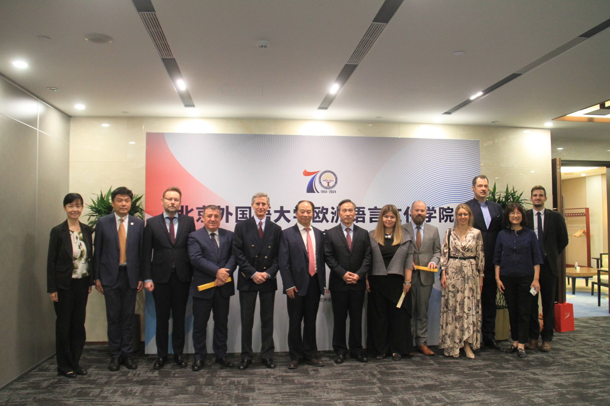 王定华在会见驻华使节和嘉宾时指出,北外欧洲语言文化学院从五十年代的波捷罗语系到现在,70年来,为中欧友好交流输送了大批优秀人才,为推动中欧关系发展做出了重要贡献。他感谢特霍夫大使、斯特凡诺维奇大使等各国驻华使节拨冗参加欧洲语言文化学院的70周年院庆,感谢各国使馆一直以来为北外欧洲语言文化学院相关语种专业的建设提供的支持和帮助。他介绍了北外的最新情况,表示学校将继续大力支持欧洲语言文化学院的发展,也希望各国使馆一如既往地支持北外,为培养中欧友谊使者提供更多的便利和机会。