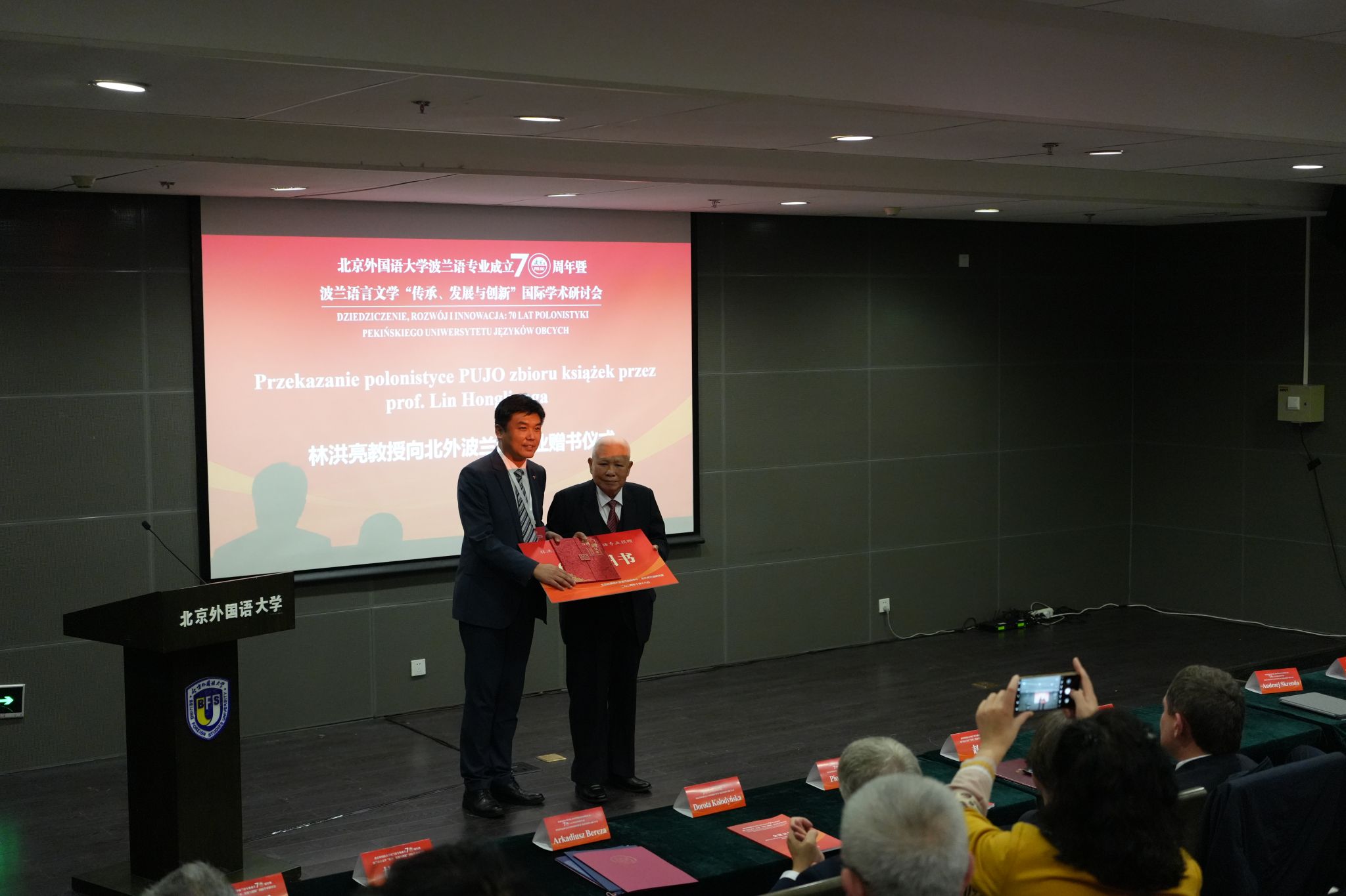 中国著名波兰文学翻译家、中国社会科学院资深研究员林洪亮教授向北外捐赠了包括《你往何处去》《先人祭》《塔杜施先生》在内的共70本图书,希望更多的年轻人投身波兰语言文学的学习和研究,为中波文化交流做出更大的贡献。