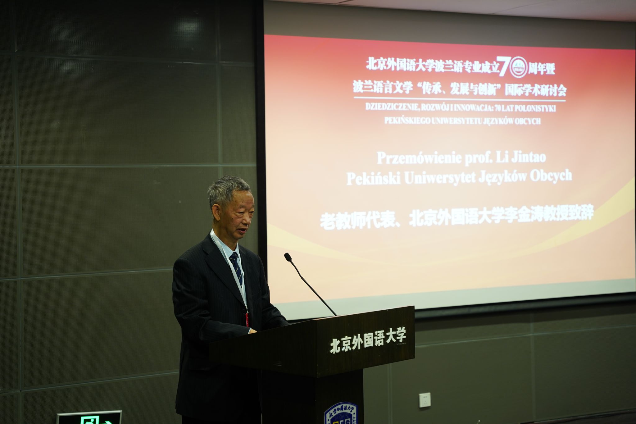 李金涛教授代表波兰语专业老教师致辞。他说,北外波兰语专业历经三代教师传承,每一代教师都为专业发展注入了全部心血。他们不仅传授语言知识,还传递了对教育事业的执着追求。有了这些教师的不懈努力和代代相传,北外的波兰语专业不断发展壮大,培养了一批又一批优秀的波兰语人才。