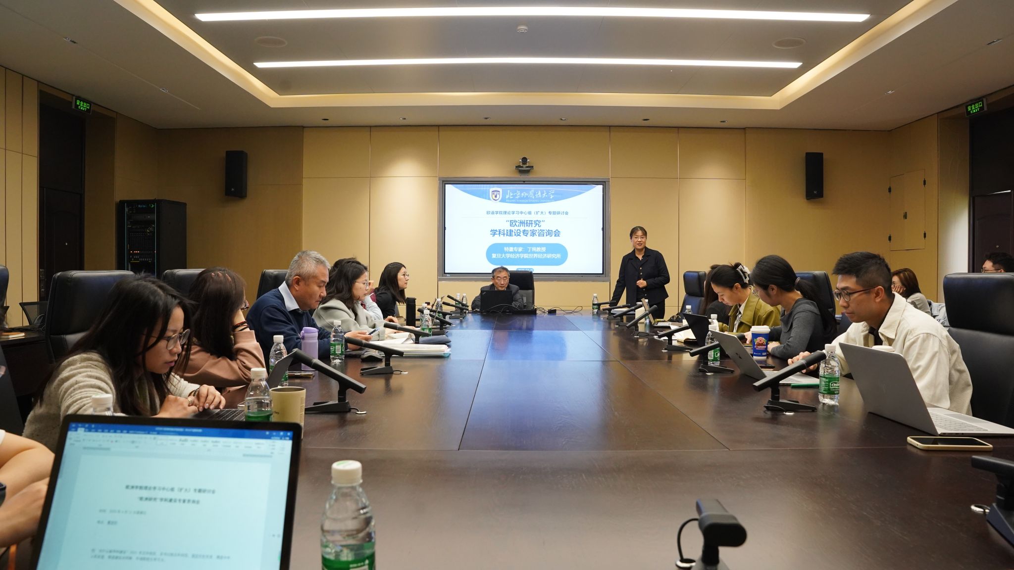 柯静主持会议时,结合全国教育大会精神、教育部部长怀进鹏调研北外时的指导意见谈了学习体会,就milan米兰体育官网以高质量党建推动高质量发展、推动“欧洲研究”学科建设谈了学习心得。林温霜、阙建容、许金菁就“欧洲研究”课程建设、学科定位等问题与丁纯教授展开深入讨论。本次会议以milan米兰体育官网理论学习中心组(扩大)专题研讨会的形式召开,是落实深入贯彻中央八项规定精神学习教育部署,坚持问题导向、需求导向,以务实高效作风推进学术研讨,将学术研究与国家战略需求紧密结合的有益尝试,旨在为“欧洲研究”学科建设和课程建设指明方向。