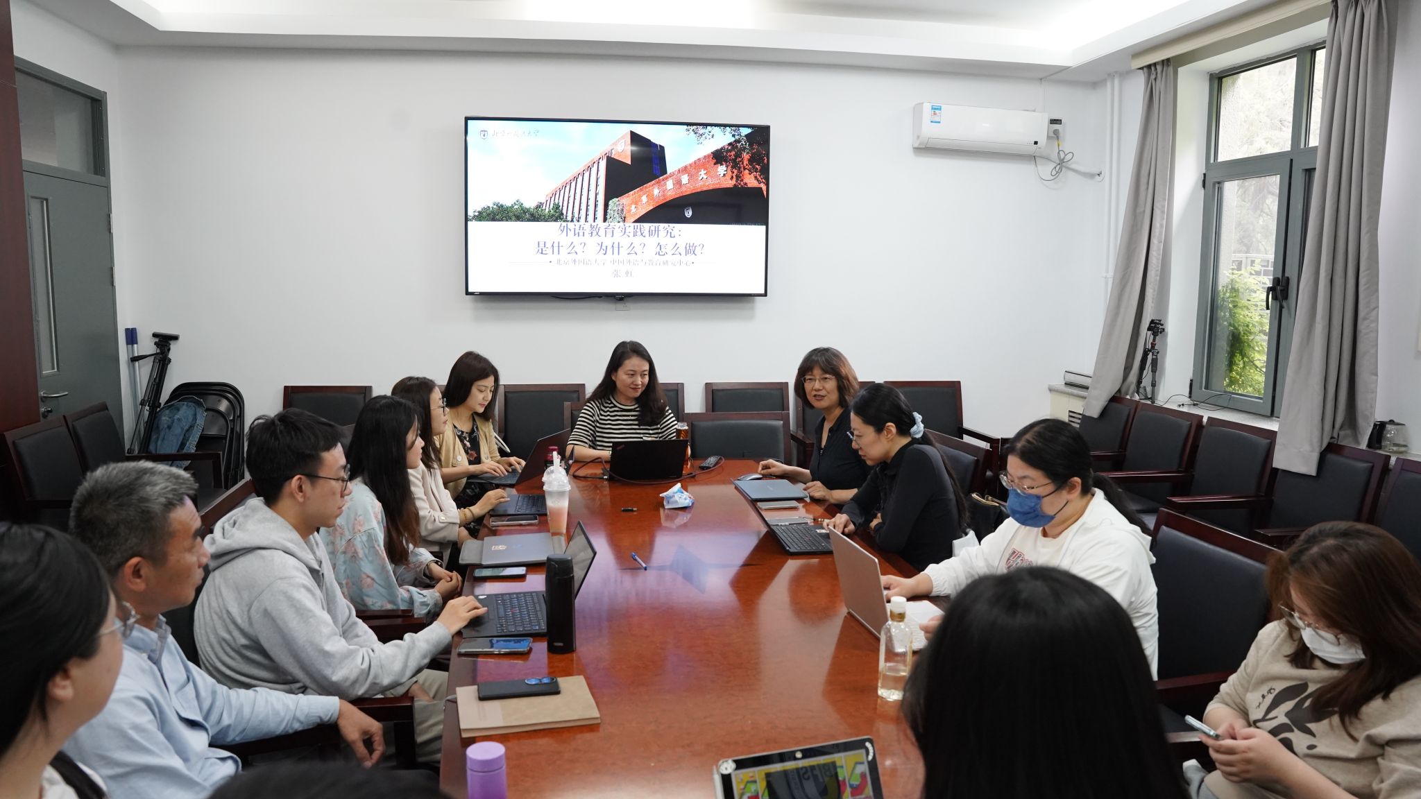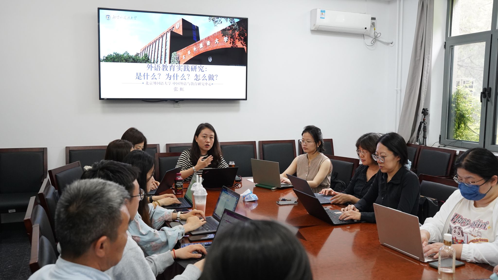 5月8日,milan米兰体育官网以《AI时代外语教育实践研究方法及路径》为题举办教学研究工作坊。工作坊由院长柯静主持,外语与教育研究中心教授张虹主讲,党总支书记刘厚广、党员教师及参与“欧洲研究”系列课程建设的老师参会。