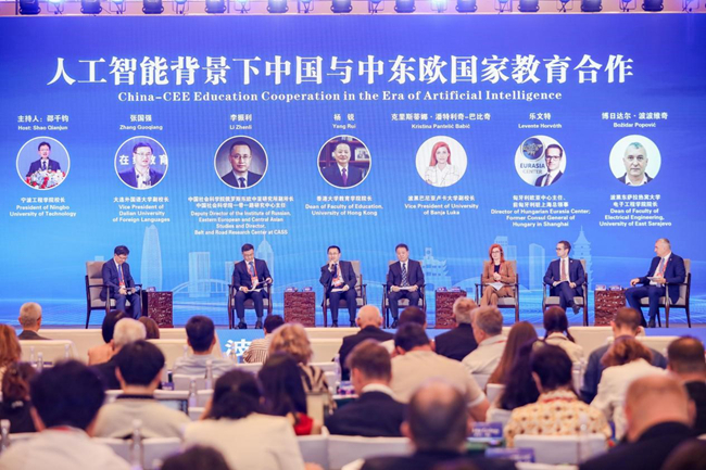 主旨发言结束后,会议以“人工智能背景下中国与中东欧国家的教育合作”为题举行高端对话会,参加对话会的嘉宾有张国强、李振利、香港大学教育学院院长杨锐、克里斯蒂娜·潘特利奇·巴比奇、匈牙利欧亚中心主任乐文特和波黑东萨拉热窝大学电子工程学院院长博日达尔·波波维奇。六位嘉宾就人工智能技术如何重塑全球教育生态、如何在不同教育体系和文化背景下实现有效融合等前沿话题展开深入讨论。大家一致认为,人工智能时代的到来为中国与中东欧国家的教育合作带来了前所未有的新机遇,同时也对培养具有跨文化理解能力和创新思维的国际化人才提出了新的要求。