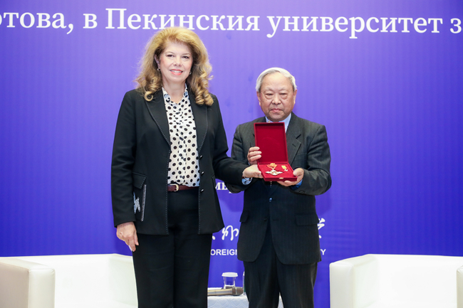 活动期间,约托娃为北外保加利亚研究中心特邀研究员马细谱颁发了保加利亚共和国“圣基里尔与圣麦托迪”一等勋章,以表彰其在推动保加利亚历史与文化在华传播方面的突出贡献。