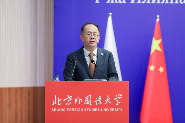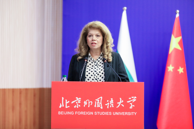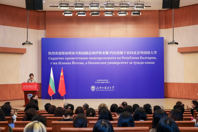 约托娃在演讲中回顾了保中两国76年的友好交往历程。她强调,保加利亚和中国都具有悠久和丰富的历史文化,相互认知是理解与合作的钥匙。当今世界更需要建设桥梁而非垒砌高墙,保中两国在教育文化领域的密切合作为国际社会树立了典范。她高度赞赏北外人才培养成绩,肯定北外对人文交流和民心相通的重要贡献,期待两国政府和高校能够在广泛学生交流基础上开展更加高水平和有深度的学术合作。