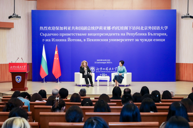 贾文键代表北外师生致欢迎辞。他表示,北外高度重视中保人文交流,自1951年开设中国首个保加利亚语专业以来,在保加利亚语言教学、文化研究及推广领域取得了丰硕的成果,成为了两国青年学者交流合作的重要平台。期待以此次约托娃副总统访问为契机,进一步深化与保加利亚各界合作,培养更多青年人才,让两国青年以语言为媒、学术为桥,让中保友谊焕发新的活力。