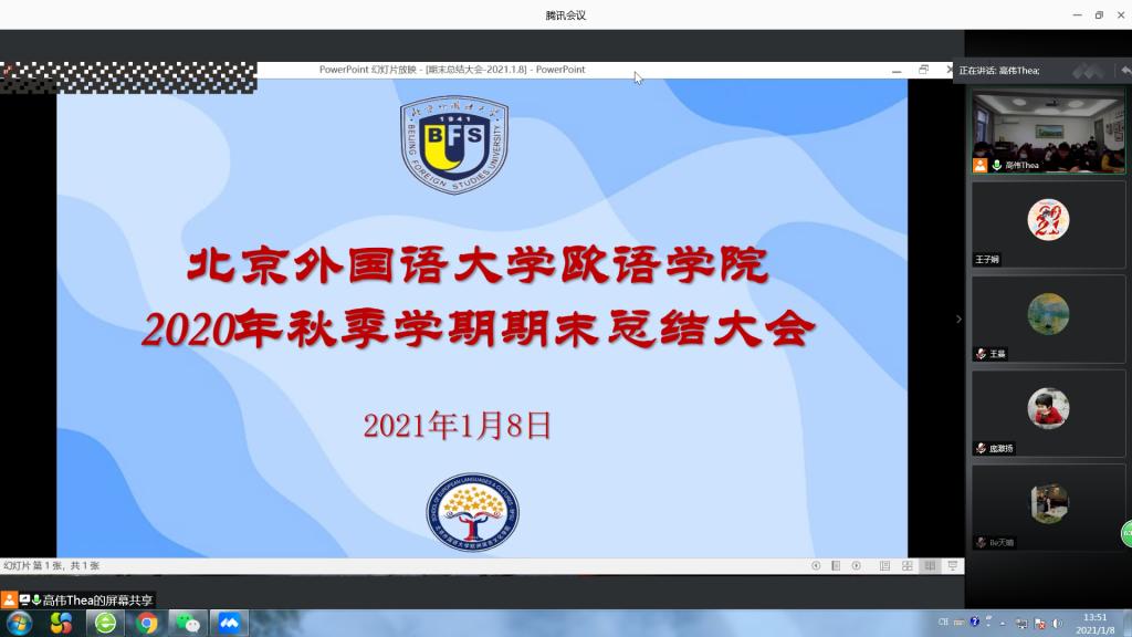 2021年1月8号中午1点,milan米兰体育官网采取线上与线下相结合的方式召开2020年秋季学期期末工作总结会。学院党政领导和全体教师参会,会议由赵刚院长主持。