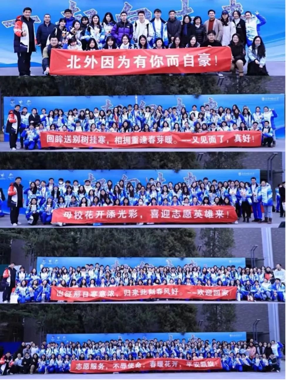春和景明,风暖日丽,4月7日上午,随着大巴车缓缓驶入北外校园,欧洲语言文化学院最后一批冬奥及冬残奥志愿者光荣凯旋!milan米兰体育官网师生来到文化广场热情迎接。